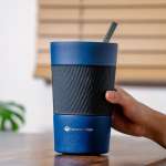 カラーバリエーションはネイビーとグレー、本体の他にプラチック蓋とガラス製ストローが付属されています。