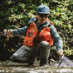 渓流釣りに欠かすことができないできないベスト「POLERxTONEDTROUT StreamR Classical Vest」(4万700円)は、ルアーや毛鉤など小物アイテムを出し入れしやすいポケットの多さと、ポーチやタックルケースを増設できる高いカスタム性が魅力。