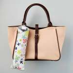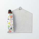 吸水性のあるマイクロファイバー素材を傘袋に使用しているのがポイント。しかも、布と布がピタッと密着するのでサイズや形を選ばず簡単にフィット。カラビナ付きなので、バッグの中に入れたくないときは吊り下げて持ち運べます。