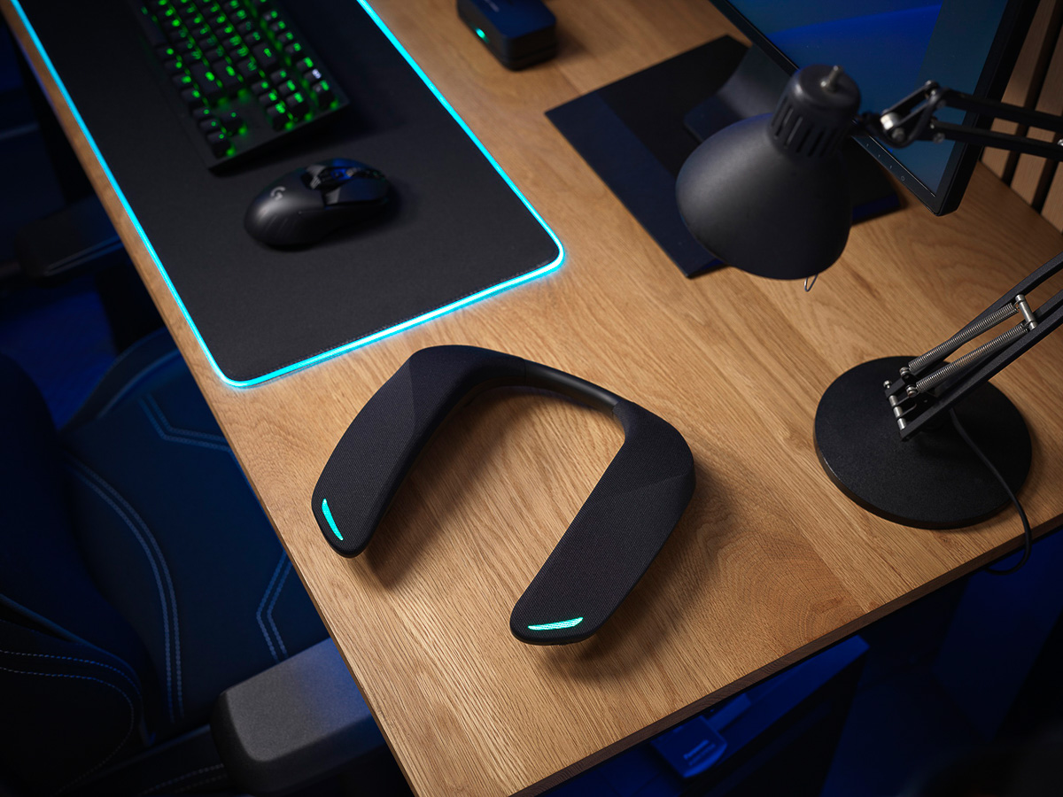 内部には、左右のフロントとリアに計4基のスピーカーを搭載。本格的なホームシアターのような臨場感あふれる音場がプレイヤーを包み込みます。さらに、独自のデジタル処理と音響チューニングにより、ゲームに最適化された定位感あるサウンドを実現しています。