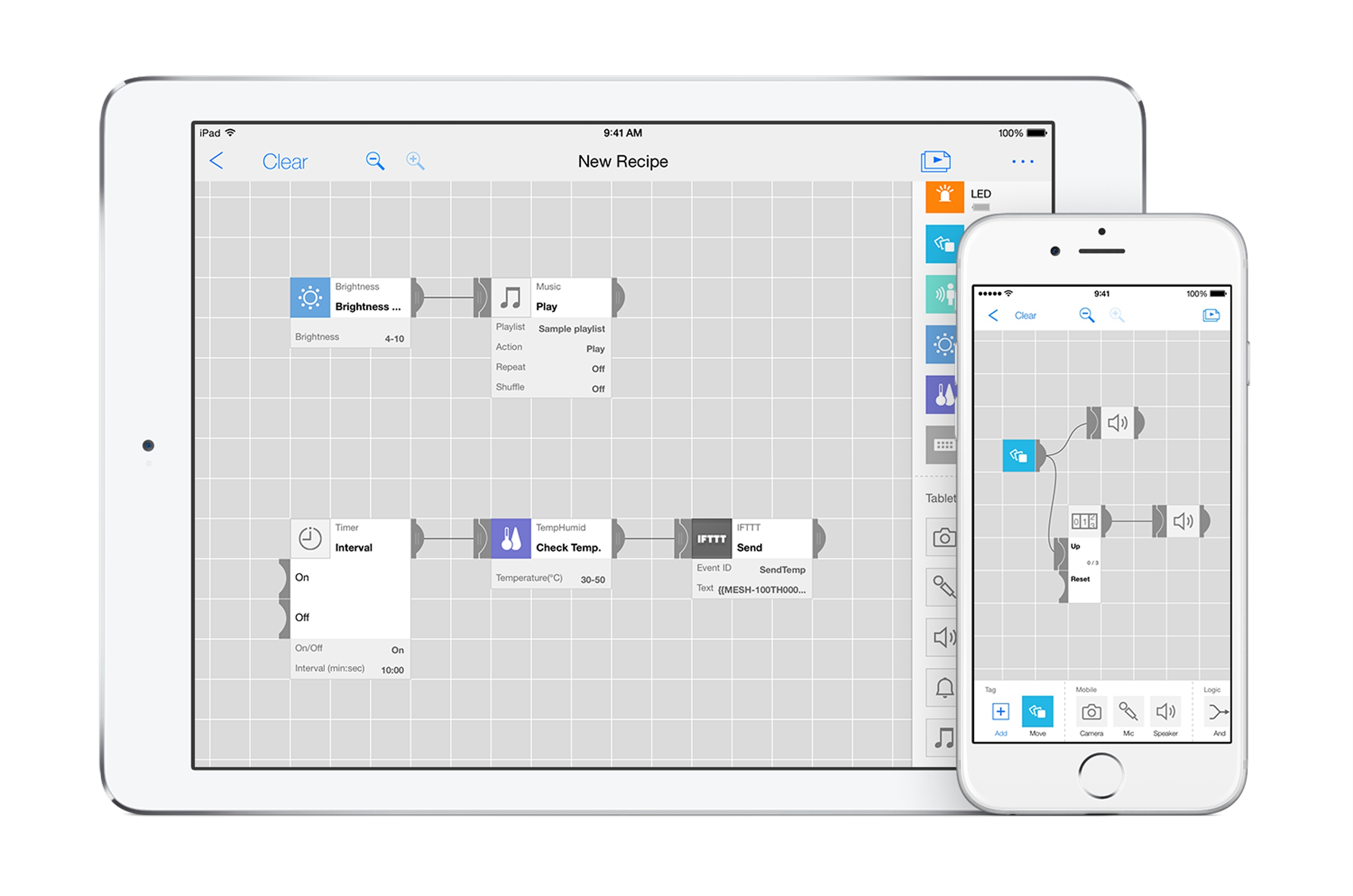 MESHタグのコントロールは、スマホやタブレットのアプリを使って直感的にプログラミングする