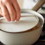焼き付け調理や蒸し焼きには、ほどよい重さの専用鋳物ホーロー製落とし蓋を。炊飯時の蒸らしやスタッキングには、専用のステンレスリッド(いずれも3600円〜4000円)を組み合わせることで、さらに調理の幅が広がります。