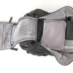 15インチまでのPC対応のパッド入りポケットは、底が地面に当たらないフローティングポケット構造で、衝撃からPCを保護。メイン収納部とPCスリーブのジッパーをまとめて施錠できるTSAロックが付属しており、セキュリティ対策も万全です。