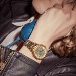カラーはシルバーとゴールドの2トーン展開。いずれも文字盤にはサンバースト仕上げが施され、光を受けて表情豊かに輝きます。ベゼルとブレスレットには全体にブラッシュ仕上げが施されますが、ケースのエッジなど限られた部分だけにポリッシュ仕上げを加えることで、80年代らしいシルエットをひときわ強調します。