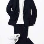 「パンツ」(1万989円)はノータック仕様ですっきりキレイめのシルエット。ウエストには内側と外側で使い分けることができる2WAYドローコードが配されています。さらっとした穿き心地と突っ張り感のないストレッチ性は、夏シーズンのカジュアルからビジネスまでシーンを選ばず大活躍。