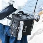 バケツやクーラーボックスなどを手で持って移動する煩わしさから解放され、釣りに集中することができます。バケツの開口部はフラップ式となっているので、ファスナーを開けずに魚を入れることができ、中で跳ねた魚が飛び出さない構造。