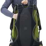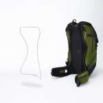 バックパネルは誰でも簡単に取り付けることができ、上下左右の4カ所のテープとバックルで、バックパックのショルダーパットに装着すればOK。背面長45~53cmの20~30Lのバックパックに対応しています。