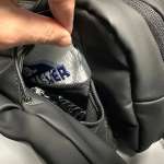 スマポッケは幅20cm×高さ16cmの大きめ設計なので、iPhone 16 Pro Maxなどの大型スマホも収納可能。さらに、スマポッケとメインポケットの間にドリンク専用ポケットを搭載。左右からスッと差し入れるだけで簡単にアクセスでき、独立ポケットなので結露で他の荷物を濡らす心配もありません。