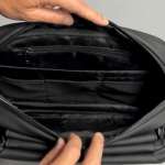 また、20×30cmのタブレットポケットを搭載し、こちらには11インチのiPadがぴったり収まる設計。内側に厚さ5mmのクッション材を内蔵し、タブレットを保護します。そして、体に密着する背面には14cm×30cmの「セキュリティポケット」を搭載。長財布やパスポート、チケット類などをしっかり収納できます。