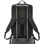 背面にはキャリーケースのバーに通して固定できるベルトを搭載。ハーネス上部に搭載した位置調整ができるロードリフターストラップが背中へのフィット感をアップして負荷を軽減します。
