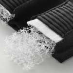 そして、背面下部に配した立体背面パッドには日本の技術によるサトウキビ由来の樹脂を配合したサスティナブルな3Dクッション材GRECO(グレコ)を使用。90%以上が空気の隙間でできており、自重の80倍の吸水性能と150%の吸湿性能を備え、難燃性能、消臭性能を持つ画期的な繊維素材です。