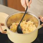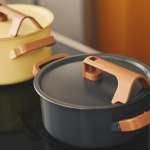 また、熱くて鍋つかみなしでは持てない持ち手部分には、なんと樹脂素材を採用。これなら素手で持ち運べます。キッチンスペースで置き場に困る蓋は取っ手部分をスタンド代わりにできる仕様に。これはうれしい仕様です。