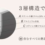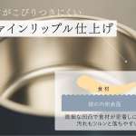 しかも、ホーローやコーティングのように剥がれる心配がなく、もし焦げ付いてしまっても表面硬度が高いのでステンレスたわしなどで落とせます。こうした仕上げに、自動車部品にも使われる特殊な加工技術が生かされているわけです。