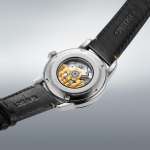 ケース径は40.6mm、厚さは12.5mmでケース素材にはキズに強いダイヤシールドを施したステンレススチールを採用。ストラップにはLWG認証の牛革を用いるなど細部にまで品質へのこだわりとクラフトマンシップが宿ります。