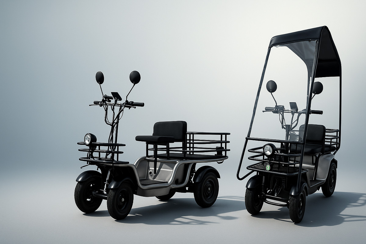 2つのモデルの違いはキャノピーの有無にあります。「スーパーエレカーゴ」には、フロントガラスと屋根が一体になったキャノピーを装備しており、風や雨を避けながら快適に走行できます。