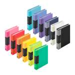 全5色展開で、色ごとに分類しやすいのもポイント。背見出し紙には直接書き込めるほか、4mm方眼のガイドに沿って「テプラ」のラベルを貼ることもでき、用途に合わせた整理が可能です。