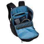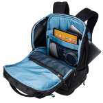 メイン収納部はダブルジッパー仕様で大きく開き、内部には16インチまでのノートPCに対応するパッド入りスリーブや、ウォーターボトルホルダーを装備。キークリップ付きの内ポケットも備えています。
