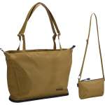 トートバッグのキャリーストラップは長さ調節が可能で、本体背面にはキャリーバー通しも装備。カラーはブラックとヌートリアブラウンの2色がラインナップされています。