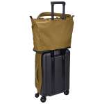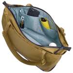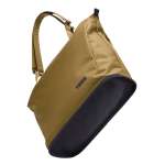 「Thule Aion Tote Bag」には、600デニールのワックス加工キャンバスシェル素材を採用。生地とジッパーにはいずれも耐水コーティングが施されており、ビーチなど水辺のシーンでも安心して使用できます。素材はすべて100%リサイクル由来で、PFC(有機フッ素化合物)を含まない耐水コーティングを採用するなど、環境への配慮も徹底されています。