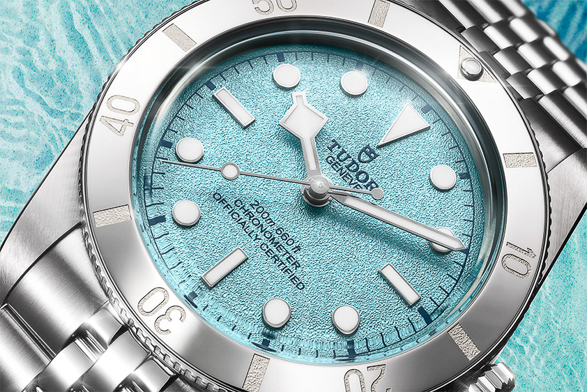 今年の相棒がまだ決まっていないなら、TUDOR(チューダー)の新作「ブラックベイ 54 “ラグーンブルー”」(59万5100円)を候補に加えてみてください。ケース径は男女問わず身につけやすい37mm。南の島の浅瀬を思わせる澄んだブルーのダイヤルが、爽やかに手元を彩ります。小ぶりながらも確かな存在感を備えた、スポーティで上品なモデルです。