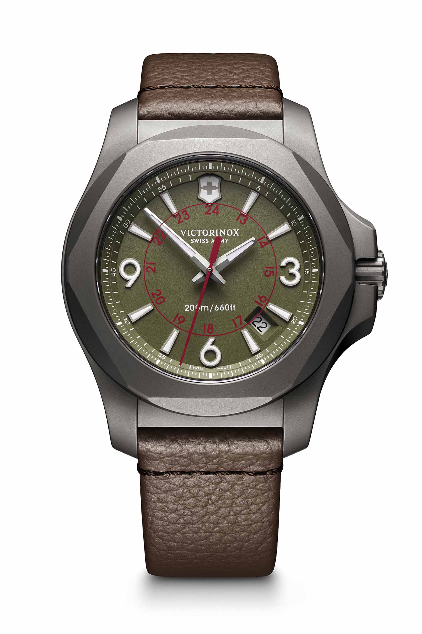 ビクトリノックスの最新ウオッチ「「I.N.O.X. TITANIUM PILOT(イノックス タイタニウム パイロット)」。モスグリーンの文字盤と赤色の針が目を引く、ミリタリーテイストのモデルです。