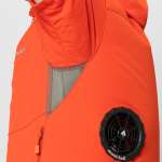 また、一般的なファン付きウエアは、バックパックを背負うと空気の流れを妨げてしまうものが多い一方、「ファンブロー」シリーズでは、左側のファンを背中側、右側のファンを身体の前面と、バックパックに干渉されにくい配置とすることで、背負ったままでも効果的に空気を送ることが可能になっています。