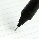 2つ目のポイントは、先金具にマットブラックの金属段テーパーを新たに採用していること。製図用シャープペンシルと同様のペン先形状により視界が広く、黒塗装仕上げによって光の反射も抑えられているため、筆記により集中しやすくなっています。