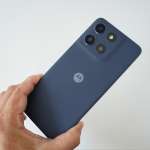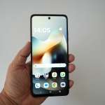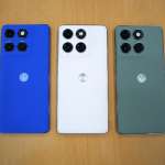 ▲moto g66j 5Gも約6.7インチの大画面ディスプレイを搭載しているが、moto edge 60 proとは異なり、フラットでベゼルは太め。重さは約200g