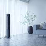 洗練された2つのカラー(グレー、グレージュ)はどちらもスタイリッシュ。夏の暑さはもちろん、クリーンな空気を心地よく部屋全体に循環させるタワーファンは1年を通して活躍しそうです。