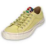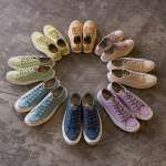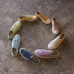 浅緑色、撫子色、露草色、萱草色、紺色、承和色、葵色の色名は、日本に古来より伝わる伝統色から採用。アッパーの生地とシューレースを同色に統一し、広島県福山市内の工場で熟練の職人技によって7色に染め分けています。