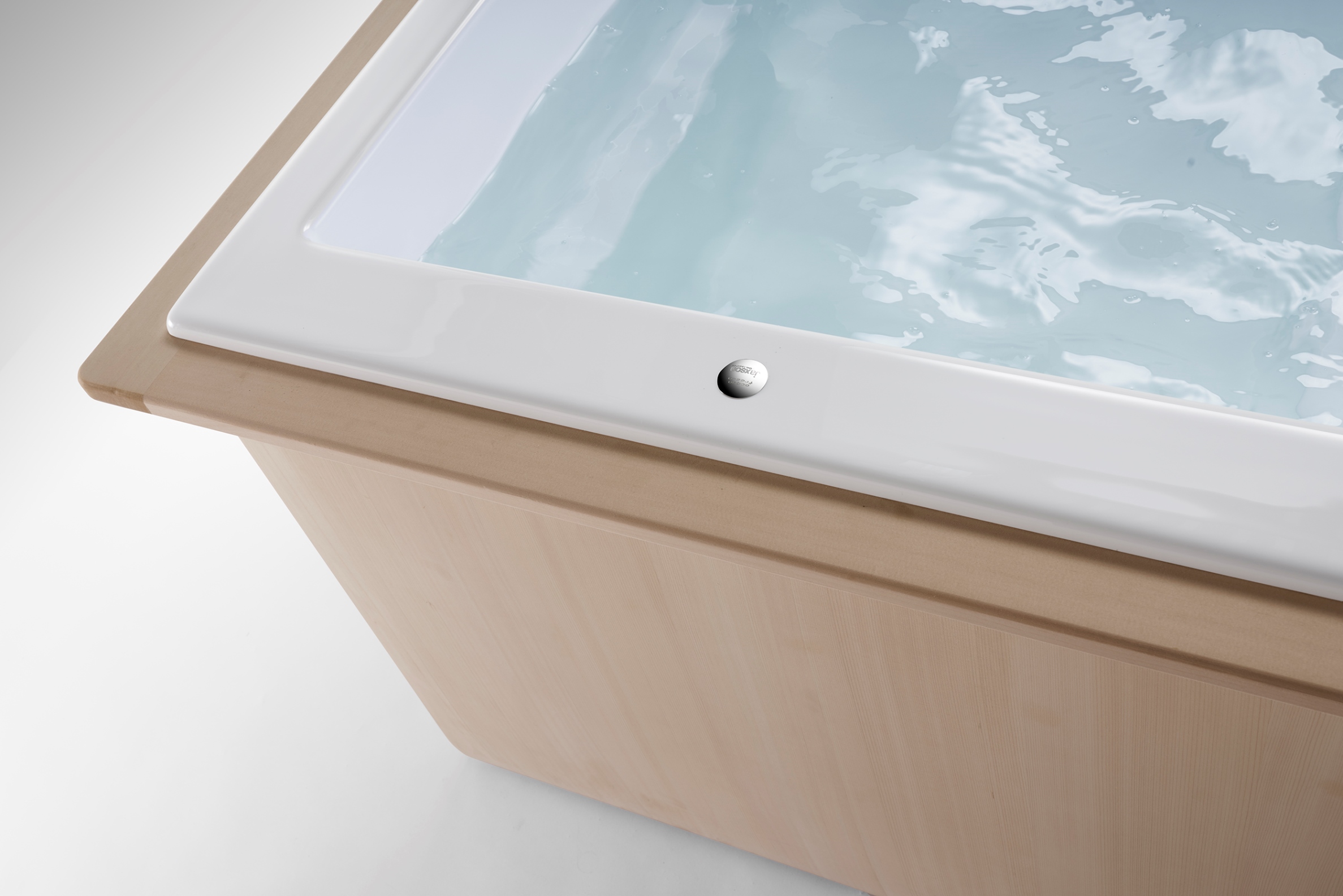 Cipressoシリーズは、日本ならではの天然素材・木曽檜のカバーと、純白のアクリル製タブを組み合わせた置型タイプの高級バスタブ。檜を用いたバスタブは同ブランドとしても初めてとなる。