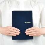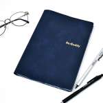 サイズは、デスク上で開きやすく書き込みやすいA5判。持ち運びにも適した、日常使いにちょうどよい大きさです。表紙にはさらりとした手触りで傷や汚れに強いPVC素材のカバーを採用。ネイビーとアイボリーの2色展開で、さまざまなシーンになじみやすい落ち着いたカラーがそろいます。