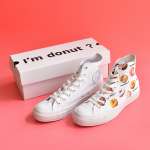 さらに、同日から「White atelier BY CONVERSE」に登場した新作のカスタマイズワッペン(1枚880円)にも、I’m donut?限定デザインが仲間入り。