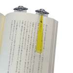 カラーバリエーションはUFOから放たれる光線の色別になっており、イエロー、パープル、ミントの3色展開です。いずれの色もポップな色味で、本体価格もリーズナブル。本の種類や好みに合わせて、複数のしおりを使い分けるのも良さそうです。