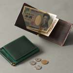 ミニマルさと使い勝手の良さを兼ね備えた「MONEY CLIP WITH COIN POCKET」(5万600円)は、グレンロイヤルのロングセラーアイテム。H9×W12×1.5cmというサイズ感でマチが薄く、ポケットに入れても外観を損ないません。スリム&コンパクトながら札、コイン、カード7枚が入り、収納力も抜群です。