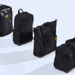 バックは全4アイテムで展開。メインファブリックに100%リサイクル防水ポリエステルを採用し、バッグの形状に応じてポリカーボネート素材やEVA素材を配置するなど、堅牢性と使いやすさを重視した仕様となっています。