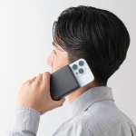 そして、マグネット式ワイヤレス充電に対応しているのも、このモバイルバッテリーの特徴(ケースの形状などによってできない場合もあります)。マグネットでピタっとiPhone(12以降)に貼りつくので、重ね持ちしてワイヤレス充電したまま使うことも。貼り付けたままズボンのポケットに入れて持ち歩いてもOK!