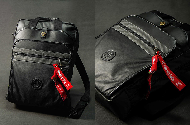 イタリア国旗カラーのリボンがアイコンのオロビアンコだが、このDESERTIKAシリーズには赤地に白文字で“DESERTIKA”と刺しゅうされたリボンが付く。ブラックレザーに赤いリボンは、かなりカッコイイ。定番は卒業、かつ機能性も欲しいという人にはうってつけのバッグシリーズかもしれない。