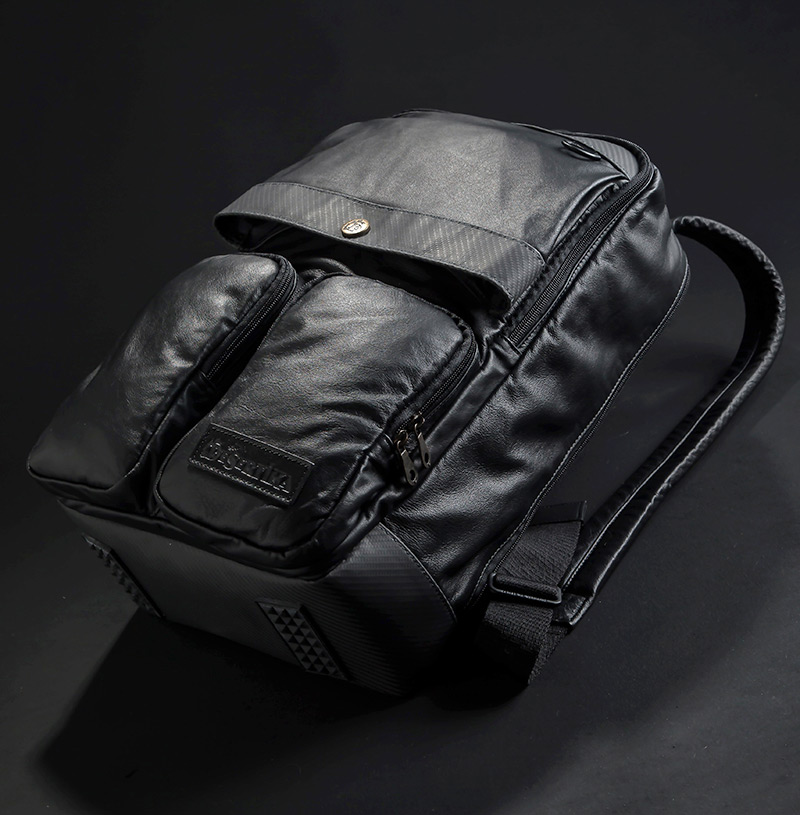 ビジネスシーンにもフィットするスクエアタイプの高機能デイパックは、レザーの上質な佇まいを持たせつつも、 機能性を追求し、外出用のビジネス用バッグから、 通勤で自転車に乗る際に便利なバックパックとしても使える。