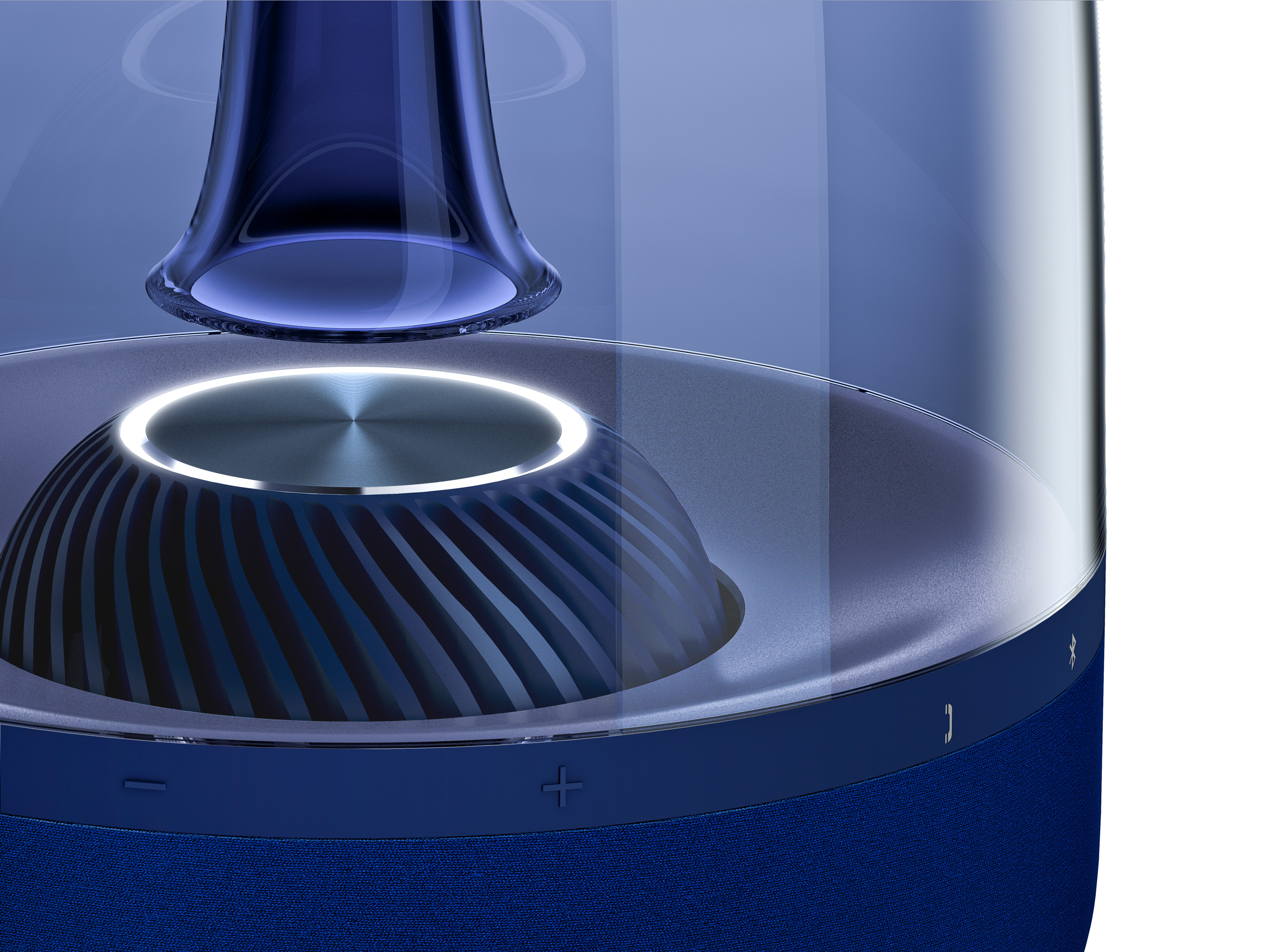 美しいラインが印象的な「AURA STUDIO」は、“AURAシリーズ”の代名詞ともいえるスケルトンボディを、落ち着いた印象をもたらすスモーク仕上げにしたことで、スピーカーとしてはもちろん、置き場所を問わないファッション性の高いインテリアとしても人気を集めています。