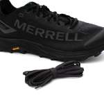 コラボシューズ「MTL LONG SKY 2 MATRYX SP」では第1弾の“焚き火の灰”に続いて“焚き火の炭”をモチーフにカラーリング。スノーピークらしいオリジナルのブラックを基調としたボディに同系色で大きくデザインされたMERRELLの文字が印象的です。