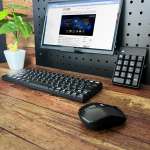 各ユニットのサイズはキーボードが幅313×奥行き115mm、テンキーが幅82.5×奥行き124×高さ18.3mm、マウスが幅58.5×89.5mm。キーボードには音の静かなメンブレン式を採用。裏面のチルトスタンドを使えば傾斜角度も調節できるので、長時間の作業も手元が疲れにくく快適です。