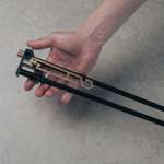 メイン素材には耐久性と軽さを両立させるアルミニウム合金を採用。表面にはアルマイト処理を施すことでマットな質感と耐腐食性を確保しています。収納した状態でのサイズは345×64×33mmで、重量は素材にアルミ合金を使用したブラックが180g、一部に真鍮パーツを使用したブラック/ブラスモデルが230g。組み立てや取り付けもシンプルで、スマートに収納・携行できるのも好ポイント。