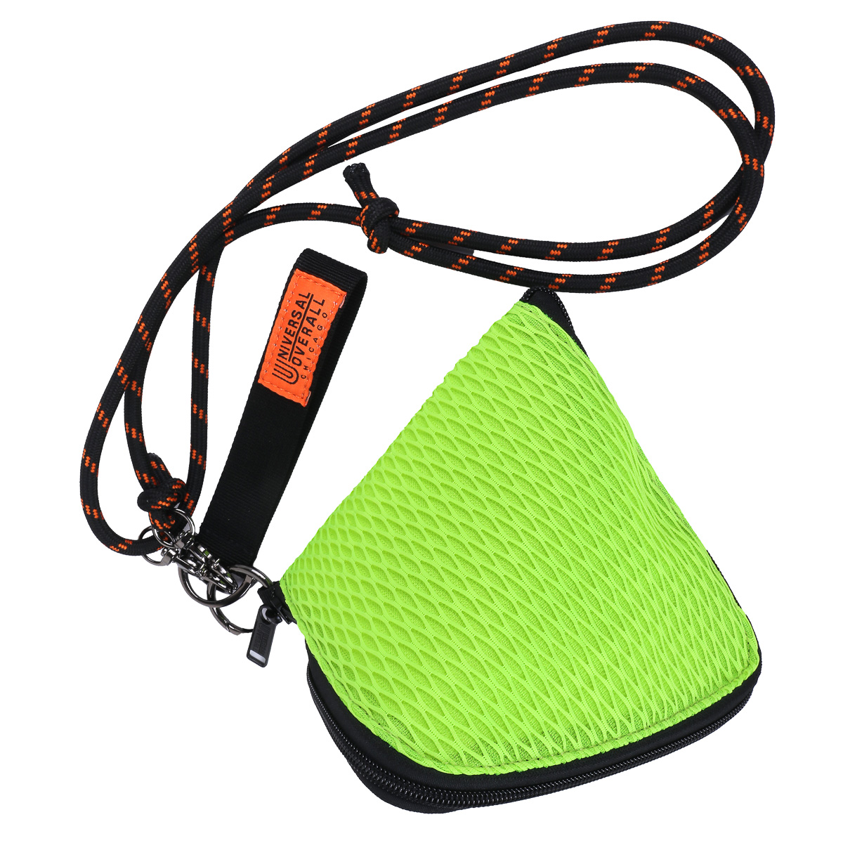 「トライアングル メッシュ ショルダー」(3630円)はイヤホンや鍵などの小物を持ち歩くのにちょうど良いサイズ(W15×H15×D15cm)の変形トライアングルピラミッドポーチ。ネオプレーンメッシュ素材で中のアイテムを保護します。