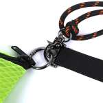 ひと回りコンパクトな10×10×10cmサイズの「トライアングル メッシュ ポーチ」(2970円)もラインナップ。こちらはザイルショルダーは付属しておらず、ベルトループやバッグに取り付けられるカラビナと、手持ちできるループ付きです。ショルダーとポーチ、どちらもWHT、LIME、C.GRY、SAX、BLKの5色展開。
