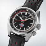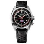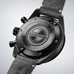 12時位置に配された“DATSUN”ロゴは、ステアリングに刻まれていたロゴ書体をベースに、本モデルのために新たに描き起こした特別仕様。また、ブレスレット中央のブラック硬質コーティングは、ダットサン240Zのボンネットをモチーフにしています。