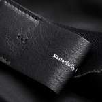 ナイロン特有の繊細なドレープと、随所にあしらった牛革のディテールが絶妙に調和し、スタイリッシュでラグジュアリーな印象に仕上がっています。