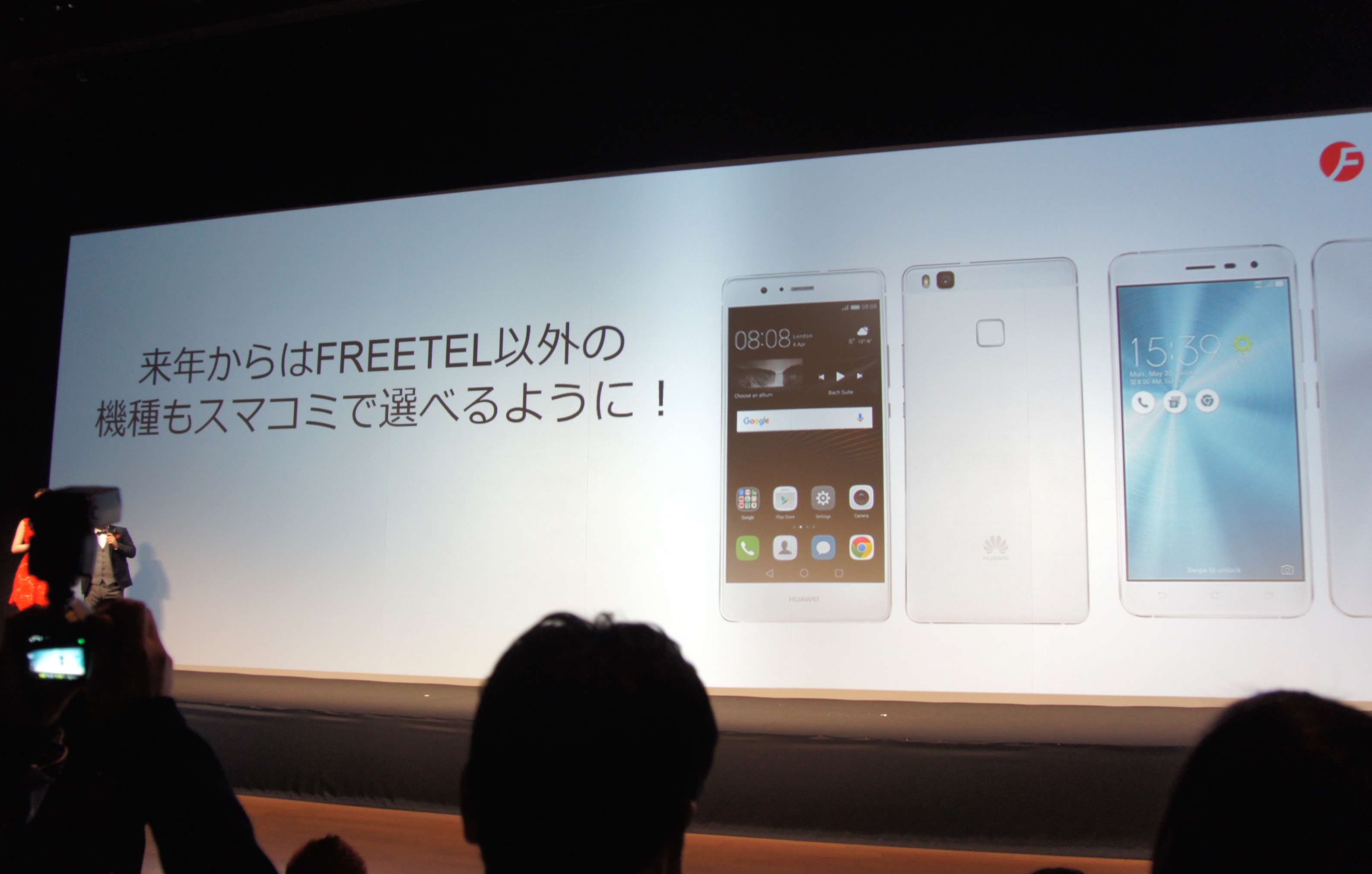 また来年以降「スマートコミコミ」の対象機種として、FREETEL以外のSIMフリースマホが加わることも発表されました。投影されたスライドには、HUAWEI「P9 lite」とASUS「ZenFone 3」らしき端末が写っていたので、これらの人気端末の取り扱いはすでに確定しているのではないかと思われます。