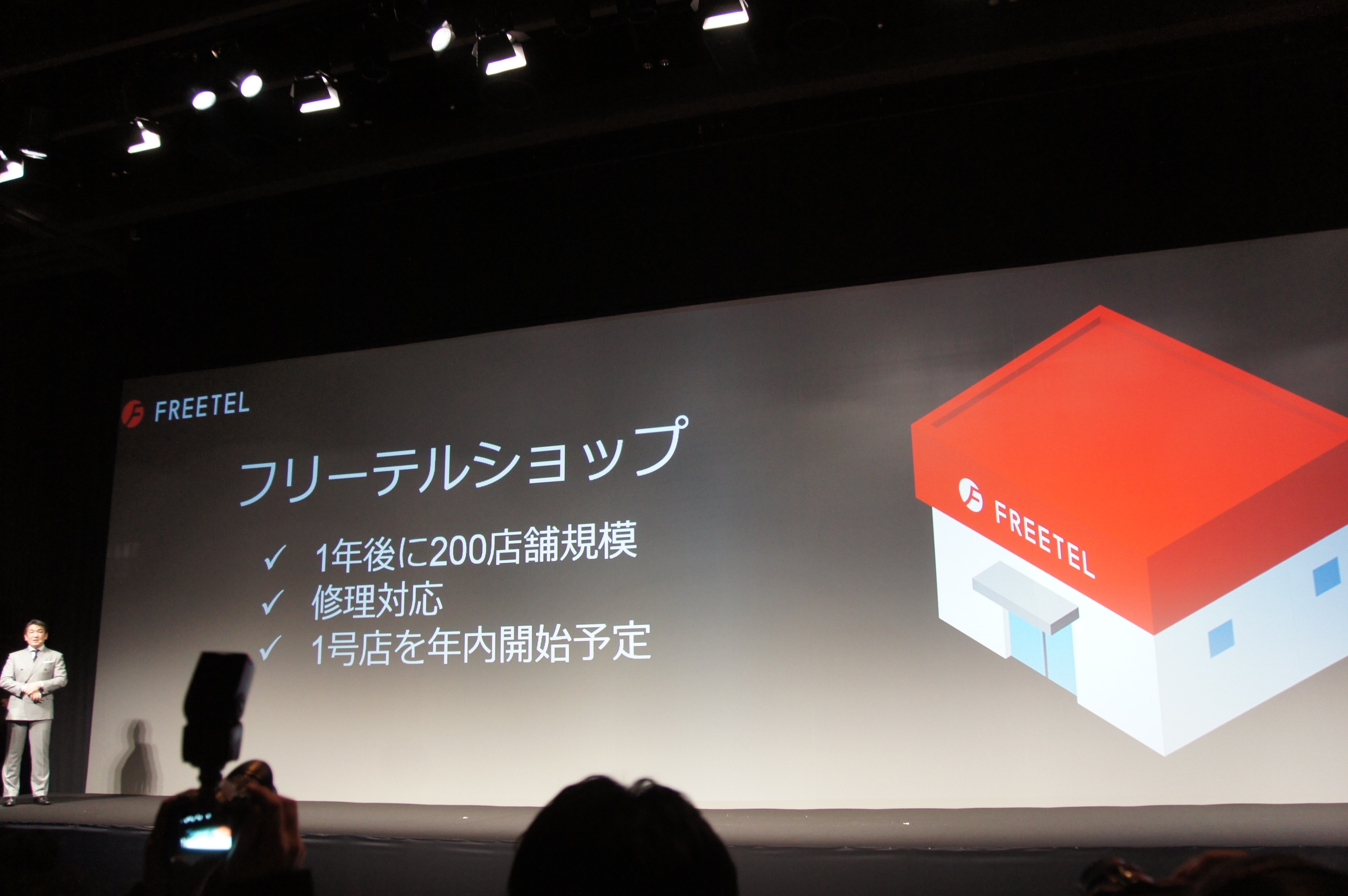 次から次へと新サービスを導入しているFREETELですが、サポートの強化にも注力。すでに、全国の多くの量販店に専用コーナーを設けていますが、これらに加えて専売のショップを展開する計画があることも発表されました。年内に1号店をオープンさせ、1年で全国200店舗に拡大したいとのこと。