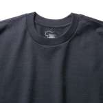 シルエットは⾝幅と袖幅にゆとりをもたせたアメリカンスタイルで、すっきりシンプルな丸胴仕様。ヘインズのアーカイブをベースにアップデートしたラウンド形状の首周りは、首に快適に馴染むよう後ろ下がりを設け、また、首周りとフェイスラインをもっとも美しく見せるよう最適な襟幅に計算されています。